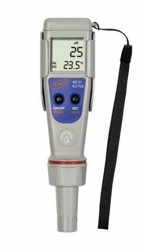 AD31 su geçirmez özellikli sıcaklık, TDS ve iletkenlik ölçer cihazdır. Cihaz gövdesi rutubete karşı tamamen korunmuştur. Tüm iletkenlik ve TDS ölçümleri otomatik olarak sıcaklık kompenzasyona (ATC) sahiptir ve sıcaklık değerleri °C veya °F birimlerinde gösterilebilmektedir. İletkenlik / TDS dönüşüm faktörü (CONV) bir noktada seçilebilmektedir. LCD ekranın sağ tarafında bulunan eşsiz stabilite indikatörü sayesinde yüksek doğruluk ve hassasiyette ölçümler yapabilen bir kombo sıcaklık, TDS ve iletkenlik ölçer cihazdır. Ayrıca AD31 düşük pil uyarı sembolü ile pillerin değiştirilmesi gerektiğinin uyarısı gösterilmektedir.
